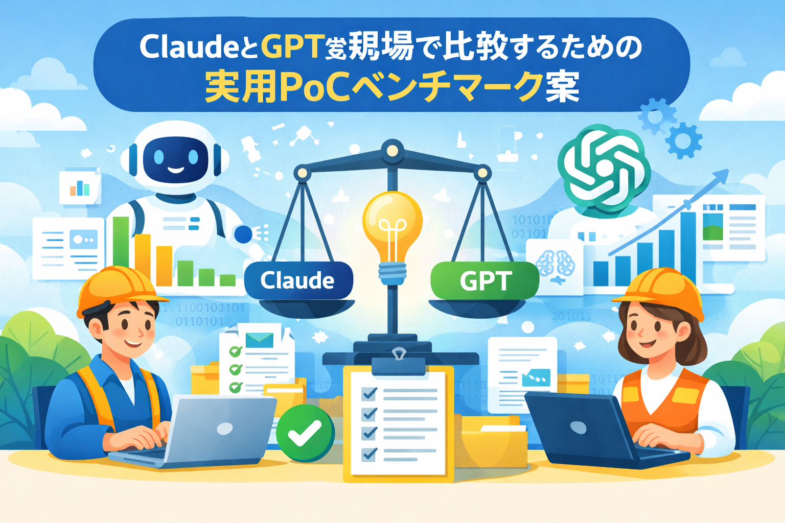 公開ベンチマークやリーダーボードの順位だけで導入を決めると、本番で誤答対応や監視工数が膨らみ、運用が破綻することがあります。本記事の結論を先に示します:汎用スコアを信頼しすぎず、業務軸(業務正確性・応答の一貫性・運用コスト・拡張性)でClaude系とGPT系を比較してください。以降は、会議で使える要点、現場で回せるブラインドPoC手順、統一スコアカード、承認チェックリストを提示します。